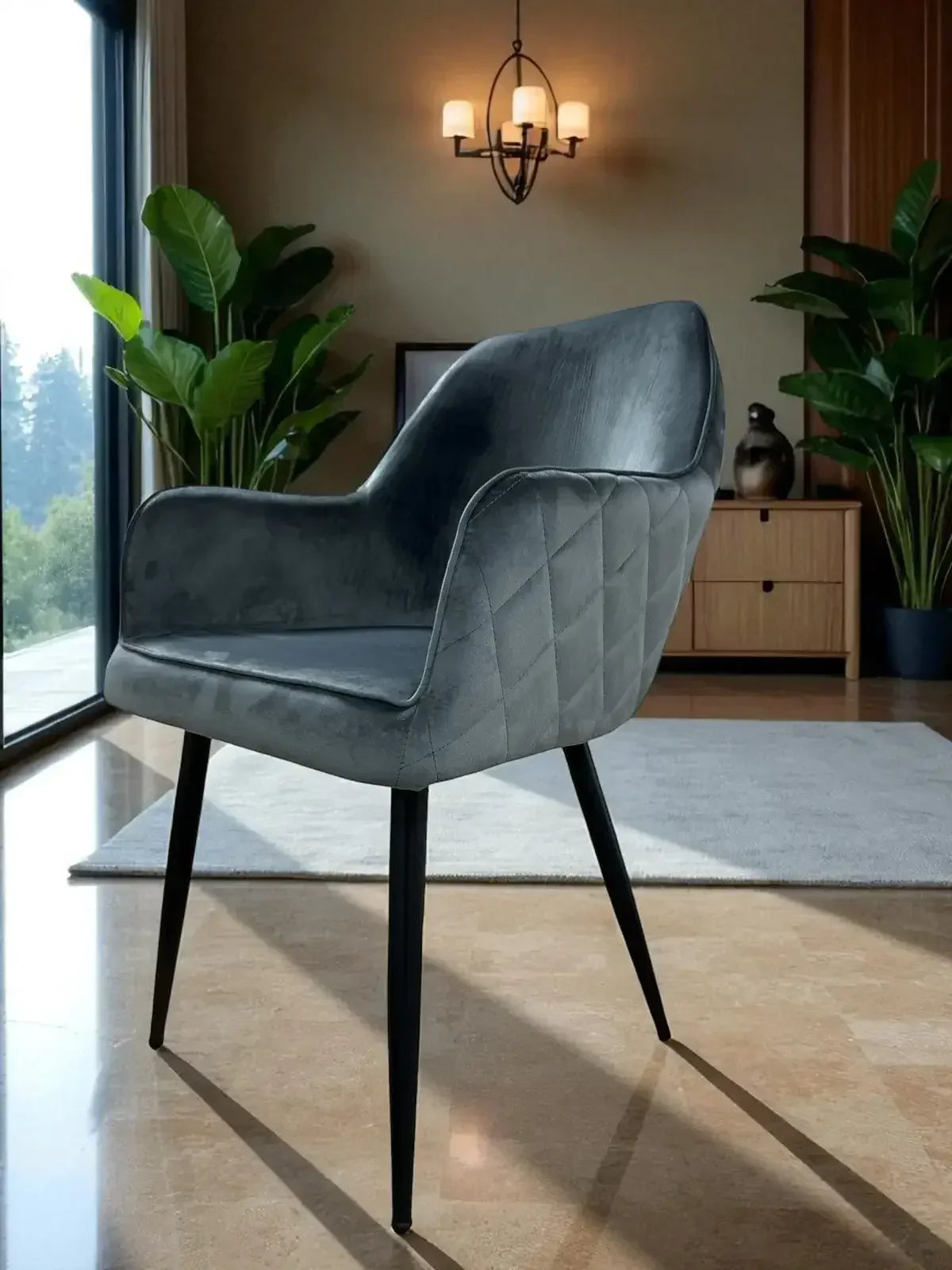 Стол Алба 2 е перфектното съчетание на модерен дизайн и луксозен комфорт. С неговата изискана сива кадифена тапицерия и елегантна визия, той ще превърне всяка трапезария в стилно и уютно пространство.