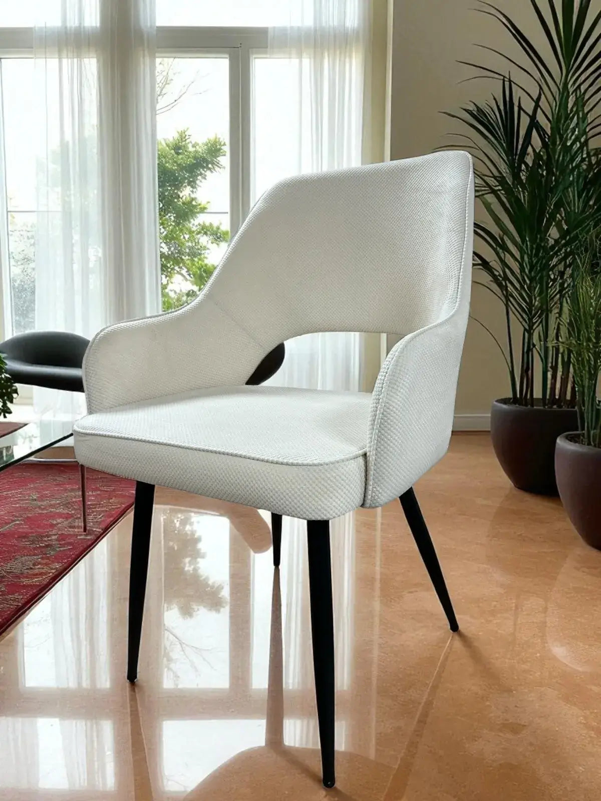 Трапезният стол Каво е перфектното решение за вашата трапезария, кухня или дневна. Изработен с висококачествена дамаска тапицерия в цвят шампанско, този стол съчетава луксозен вид, комфорт и изтънчен дизайн.