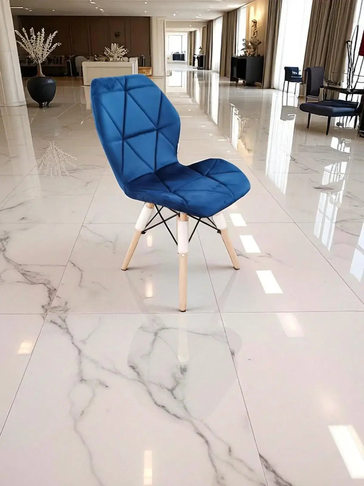Трапезен стол Мелина синьо кадифе